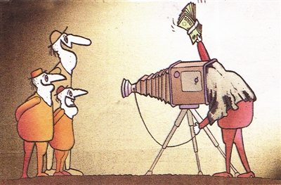 照相者是一群“贪谋欲吸万家脂,只信金钱能说话”的大款,摄影师无奈,像哄小孩那样,摇动手中的钞票,他们终于笑了。【罗马尼亚】 克力珊
