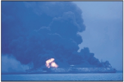 1月6日20时许,巴拿马籍油船“桑吉”载凝析油约13.6万吨(船上32名外籍船员),与中国香港籍散货船“长峰水晶”在长江口以东约160海里处发生碰撞,导致“桑吉”轮全船失火。