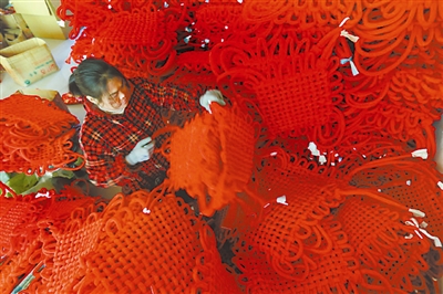 春节临近,山东临沂、枣庄等地的节庆饰品车间、手工艺人开始忙碌起来,人们加紧制作各种春节饰品,供应市场。