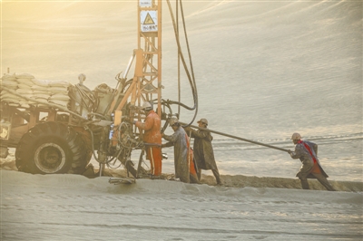 项目施工正值冬季,在安全管理上,2113队严格执行冬季“十二防”安全生产措施,针对施工中的安全风险制定了严格的管控办法。副队长马红照说:“现在室外最低温度已经到了零下20摄氏度,我们为钻工配备了足够的防寒劳保用品,加强了现场安全巡查力度,通过勤讲、勤看、勤查,做到对机组作业安全有效管控。”