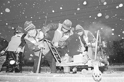 面对元旦后豫西南突如其来的大雪,南阳工务段启动应急预案,各车间党支部组成清雪突击队,以雪为令对管内线桥、隧道及各大站场道岔、重点地段设备进行清雪除冰作业,保障铁路大动脉安全畅通。 张中海 柳盼摄