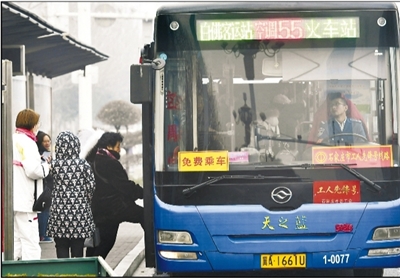 雾霾“侵袭”河北多地石家庄市民免费坐公交