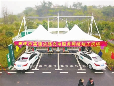 1月16日,在重庆绕城高速公路和重庆境内的沪蓉、沪渝、渝遂、渝昆、渝湘等高速公路的61个服务区,建成的61座高速公路电动汽车充电站全部开始面向社会提供充电服务。