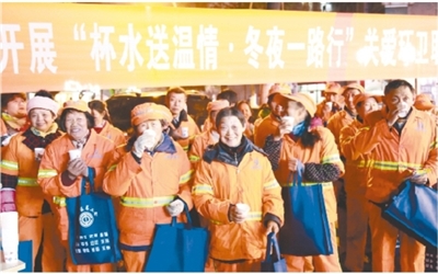 成都工会“杯水送温情·冬夜一路行”关爱环卫工人在行动——