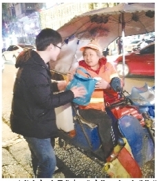 “15分钟之家”志愿者为工作中的环卫工人送礼品