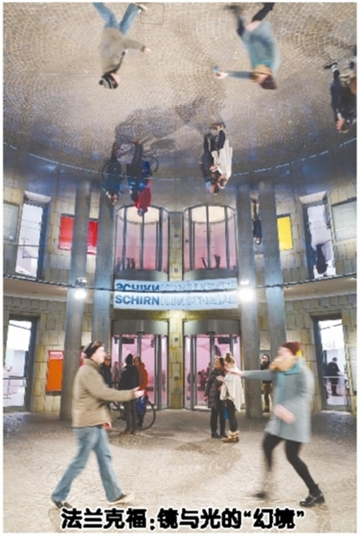 法兰克福席尔恩美术馆于2017年10月6日至2018年1月21日举办“立体透视剧场”展。德国艺术家菲利普·费尔霍夫的巨型装置艺术作品《断接》利用镜子与光的组合将席尔恩美术馆圆形大厅变换成为“梦幻境界”。新华社记者 罗欢欢 摄