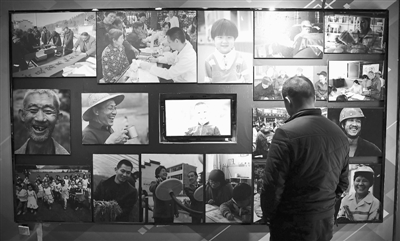 1月19日,市民在安康市移民搬迁博物馆内参观移民肖像墙。