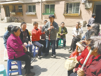 “这是新加的。”她指着小区东面空地上的石凳说,盲人们喜欢聚在一起聊天,夏天晒晒太阳。石凳旁还有太空漫步机、臂力锻炼器等健身器材,盲人们偶尔也会活动一下。最多时,这里能聚起二三十人。