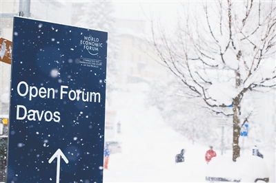 这是在瑞士达沃斯拍摄的大雪中的世界经济论坛2018年年会的指示牌(1月22日摄)。当日,达沃斯继续降雪,给当地交通造成影响。世界经济论坛2018年年会将于23日至26日在瑞士达沃斯举行,主题为“在分化的世界中打造共同命运”。