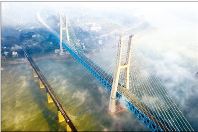 这是1月9日拍摄的新白沙沱长江特大桥(右)和修建于20世纪50年代的白沙沱长江大桥。