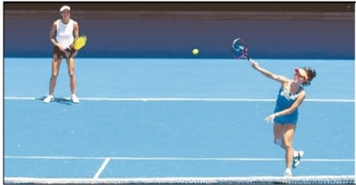 1月24日,彭帅(右)/谢淑薇在比赛中。
