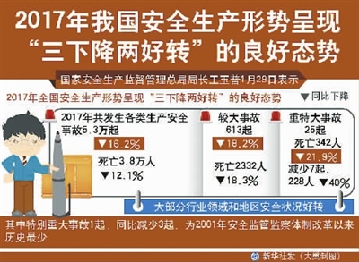 2017年我国安全生产形势呈现“三下降两好转”的良好态势