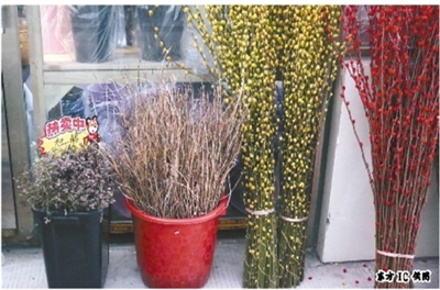 在记者的一再追问下,该店家透露,这些“枯枝”来源于东北,刨除所有成本,按每枝一元的售价来算,每枝有近6角的利润,入冬以来大约售出数千枝。“虽然盈利不多,但卖‘枯枝花’增加了我店里的人气,其他价高的花卉卖得也比平时多不少。”