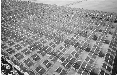 图为1月28日航拍的江苏省南通市首个光伏生态农业大棚示范项目。该生态农业光伏大棚示范项目装机容量814.2KW,在占地约1.2万平方米的农田内架设4.855米高的钢结构,顶部安装2760块295wp的单晶硅光伏组件,共覆盖18个蔬菜大棚。项目建成后年光伏发电量约100万千瓦时,每年可节省标煤320吨。光伏大棚融入传统农业,不仅可以获取高效农业、绿色发电等经济效益,也实现了节能减排的社会效益。
