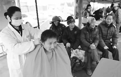 1月31日,合肥市凌大塘社区志愿者在为外来务工人员理发。