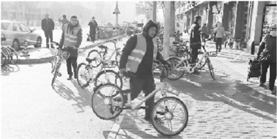 “除了中午吃饭,一整天都在外面跑。”王朝阳说,他们的工作很少能够休息,一旦进入车辆破损高峰期,工作时长可能要接近12个小时。“在规定的共享单车停放点内,一旦出现空位,我们要第一时间将自己公司的车补上去,各公司间的竞争,主要就体现在谁能有效、更多地占领停放点。”