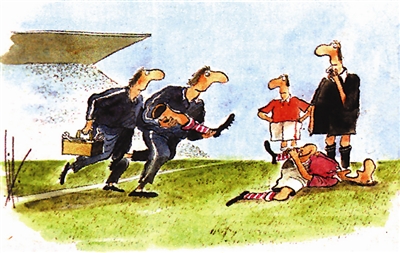 球员腿部受伤,队医立马赶来治疗,救治方法采用了快速换肢之术。看来此招数荒诞,可说不定哪天真的成为某球队发明专利。