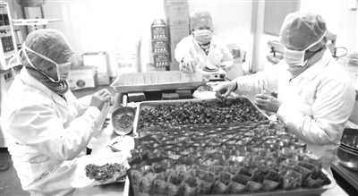 图为2月5日,贺家村玫小美玫瑰农场工人在加工玫瑰茶,该农场是流转该村的山坡地建起来的。