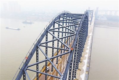 春运期间,每天都有130余趟列车通过九江长江大桥。为了保障列车安全畅通,中国铁路南昌局集团公司九江桥工段的检修人员日夜坚守在岗位上,守护着大桥与旅客的安全。胡国林 摄