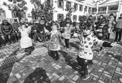 2月6日,长兴县李家巷中心幼儿园的小朋友给福利中心的老人们表演节目。