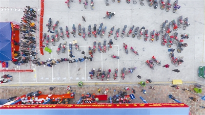 2月1日,广东佛山,春运首日,上千辆“摩骑大军”前往加油站免费加油。此后几天,他们将陆续踏上返乡路。