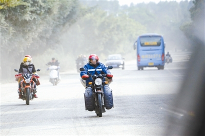 正值春运大幕开启,路上车辆明显增多,小汽车、大卡车、油罐车混在一起。苏文勇的摩托车独自穿行在各种车辆中间,似乎随时都能被车辆的洪流吞掉。