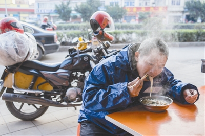 第二天早上7时30分,苏文勇准时起床,在地摊吃了碗米粉便再次上路。