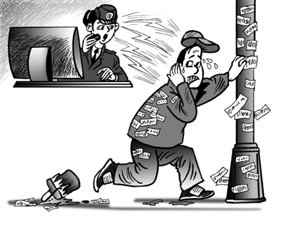 据新华社报道,近日湖北武汉城管自创一套针对城市乱贴、乱画、乱涂“三乱”现象的语音提示系统,又称“呼你撕”,能在工作时间内对核实的“三乱”电话号码自动进行3至5次呼叫语音通知,同时发送短信通知,告知当事人在何地违规、如何处理,直至当事人主动撕掉小广告或接受处罚为止,一个多月来,武昌区收缴“牛皮癣”的数量从73万张降至23万张。