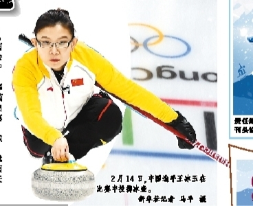 2月14日,中国选手王冰玉在比赛中投掷冰壶。