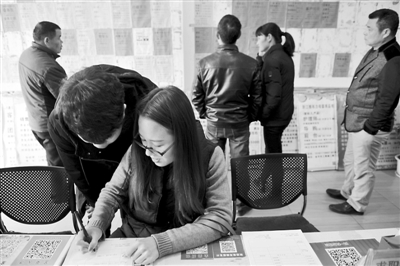 2月21日,浙江金华市,尽管春节假期还未结束,但金华市人才市场职业介绍一条街上却一派热闹景象,前来找工作和招工的人已是络绎不绝,众多提前开门的劳动力中介机构聚集着不少外来务工人员,他们查看招聘信息、现场咨询,寻找自己理想的工作岗位。