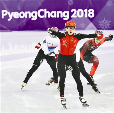 继摘得平昌冬奥会中国代表团首金后,由武大靖、韩天宇、许宏志、陈德全组成的中国队以6分32秒035的成绩,在男子5000米接力决赛中摘得银牌,也创造了中国队在冬奥会该单项上的历史最好成绩。