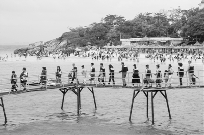 图为海南三亚的一处海上游乐园,游人如织。