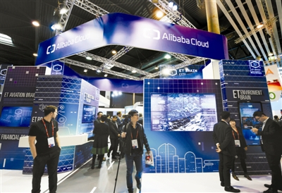 图为人们在世界移动通信大会上参观阿里云展台。 新华社记者 郭求达 摄