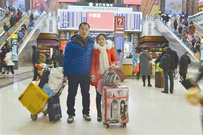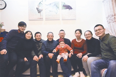 缪新铎(上图右四),53岁,安徽铜陵人,今年第一次去儿子家过年。儿子去年在重庆成家后添了宝宝,缪新铎和家人商量后带爱人和85岁的老丈人一起,乘坐高铁去重庆过年。