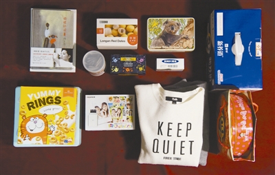 一盒红枣茶、一箱牛奶、各种零食,《姥姥语录》、治疗鼻炎的药品、父母给买的新衣等。