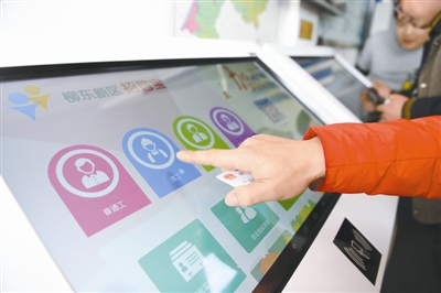 近日,柳东新区人社部门向辖区15个村屯和4个社区发放40台智能终端设备,该设备登记注册有辖区内110多家企业,日前发布2000余个岗位,方便农民工实现家门口就业。