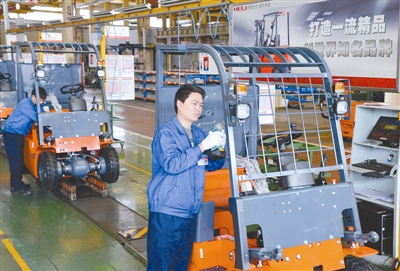 “全国技术能手”“江淮工匠标兵”安徽叉车集团高级技师刘飞在组装调试叉车