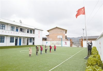 2月26日,重庆市一所“微小学”师生7人举行升旗仪式。瞿明斌摄