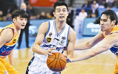 北京队主场95比104负于上海队,图为方硕上篮。本报记者 许之丰 摄