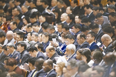 3月5日,十三届全国人大一次会议开幕会现场,代表委员们听取国务院总理李克强作政府工作报告。