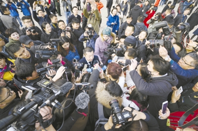 3月5日,电影导演贾樟柯代表在接受媒体采访。在谈到主旋律电影在电影市场获得高票房的话题时,贾樟柯表示,这说明主旋律电影受到了观众的拥戴。这些影片既有好的立意,又能按照电影的规律、艺术的规律办事。本报记者 王伟伟 摄