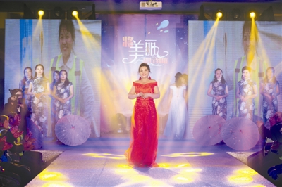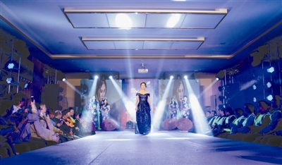紧接着,13位模特身着各种样式的时装,或长或短,或袖或无,或红或蓝,五颜六色,在七彩闪烁的灯光中,袅袅娜娜,惊艳时光。尽管事先知道,但每一位观众还是有些不敢相信这就是那谁谁谁。