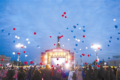 莫斯科民众庆祝世界杯开幕倒计时百天
