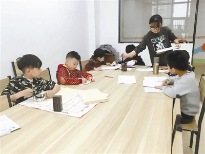 职工子女“四点半活动中心”组织书法课