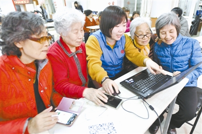 当日,北京市丰台区东高地街道举办“让互联网和老年人友好起来”手机和电脑上网培训课堂,志愿者为社区里的老年人讲解智能手机应用、网络购物、预防电信诈骗等知识,让老年人熟悉使用互联网,融入信息时代。新华社记者 李欣 摄