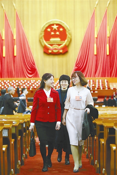 3月20日上午,三位全国人大代表步出人民大会堂。当日,第十三届全国人民代表大会第一次会议,在圆满完成各项议程后胜利闭幕。