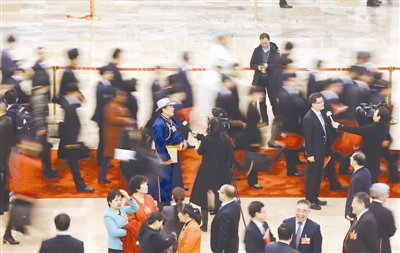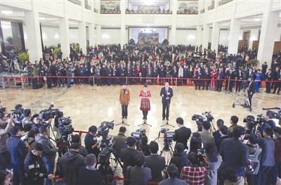 3月20日上午,闭幕会结束后,代表们接受记者采访。
