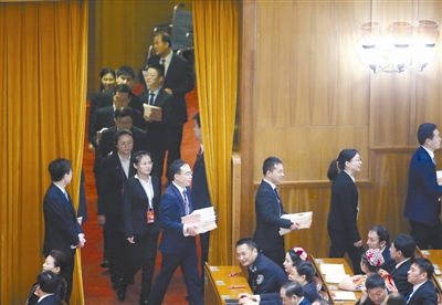 3月18日,工作人员开始分发选票,为代表们尽责履职服务好每一个细节。