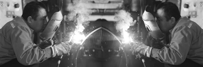 近日,金源公司修理组工人正抓紧维修钻井设备,以确保机械正常使用。焊接时冒出的火光和浓烟,成了特殊的“焰火”。王辉 摄