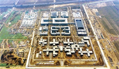 图为3月26日,主体结构已经全部完工的雄安市民服务中心航拍图。